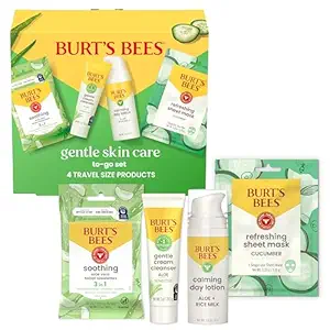 - TRAVEL SIZE PRODUCTS: One Burt’s Bees Gentle Skin Care To-Go Gift Set with one sheet face mask, one pack of 10 facial to…